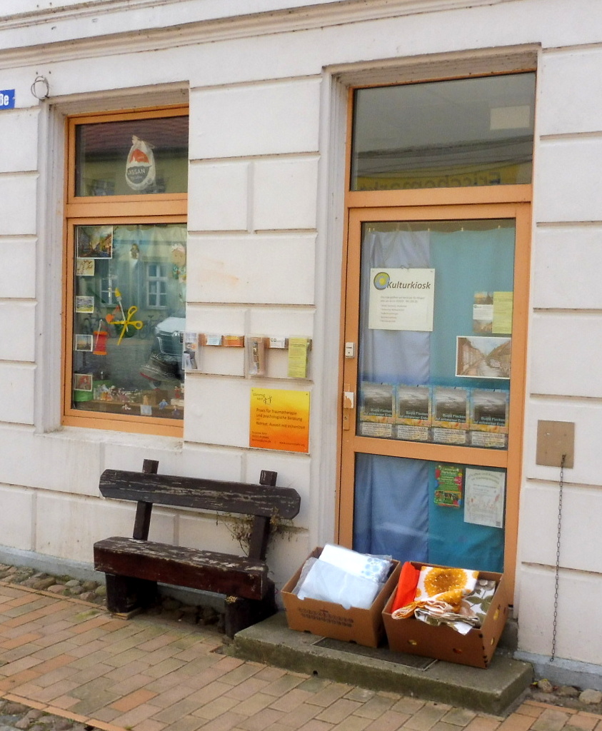 Vor ein paar Wochen bin ich endlich dazu gekommen, zwei Kartons mit Stoffen, welche aus einer Haushaltsauflösung stammen, an den Mann zu bringen. Um genau zu sein, habe ich sie an die Frau (Frauen) gebracht. Bei Ausflügen mit der Familie in die Region Vorpommern-Greifswald hatte ich im Vorfeld den Kulturkiosk Lassan mit dem schönen Namen TREFFER entdeckt. Dieser betreibt in den Räumlichkeiten Lange Straße 23 unter anderem eine Nähwerkstatt. Ich bin jetzt schon gespannt, was die dortigen Macherinnen Biena und Susanne aus den überlassenen Stoffen zaubern.